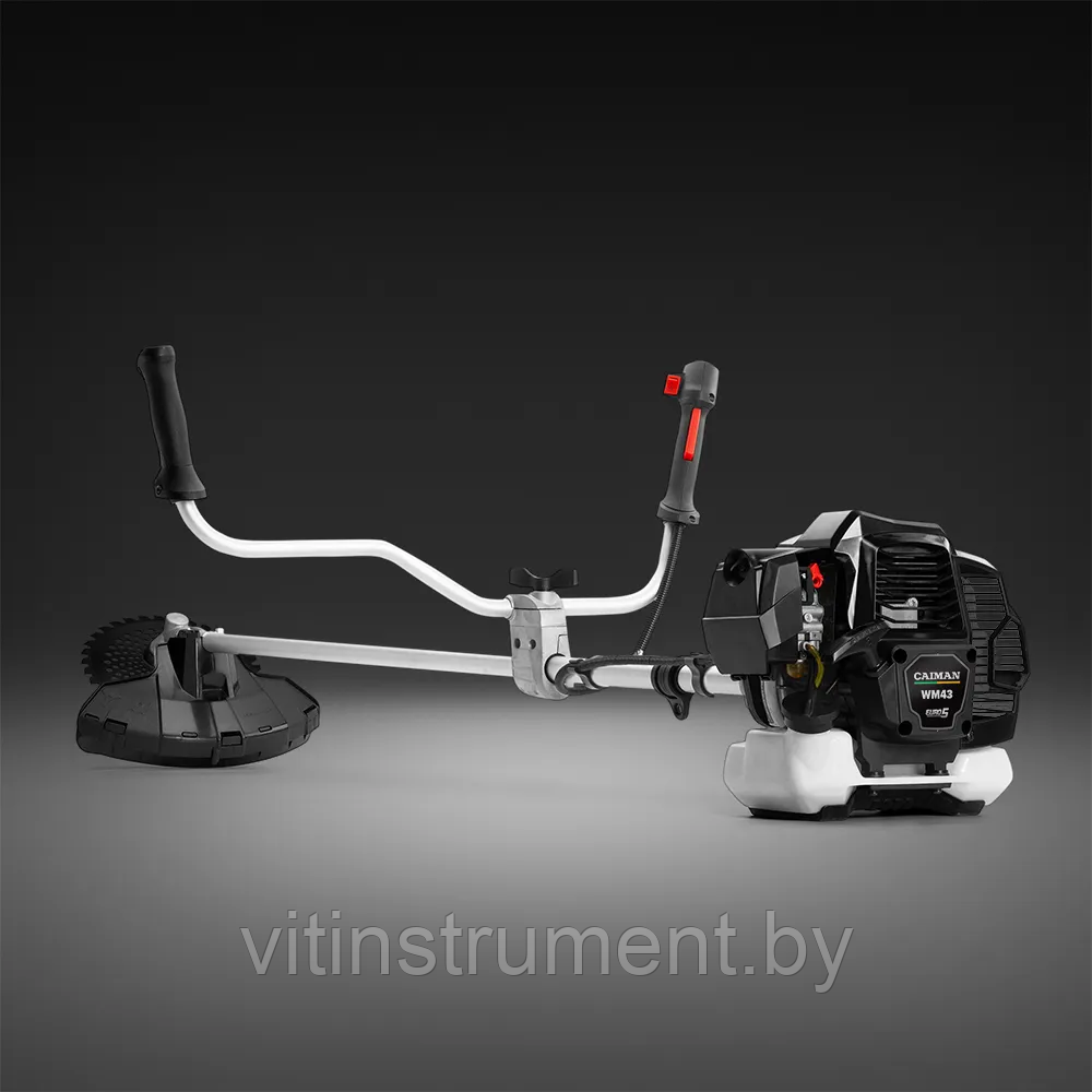 Профессиональная бензокоса-кусторез CAIMAN WM43 – это мощная и производительная модель, которая подходит работникам лесных хозяйств и коммунальных служб для тяжелой, продолжительной и интенсивной работы. Бензокоса имеет прямую штангу, неразъемный стальной кованый вал и систему легкого запуска Fast Start, которая обеспечивает быстрый запуск двигателя при минимуме усилий. К числу инновационных технологий, примененных при разработке данной модели, также относятся профессиональный усиленный редуктор и система виброгашения. В стандартной комплектации имеется комбинированный защитный кожух со съемным элементом, который подходит как для работы с триммерной насадкой, так и со стальным диском.